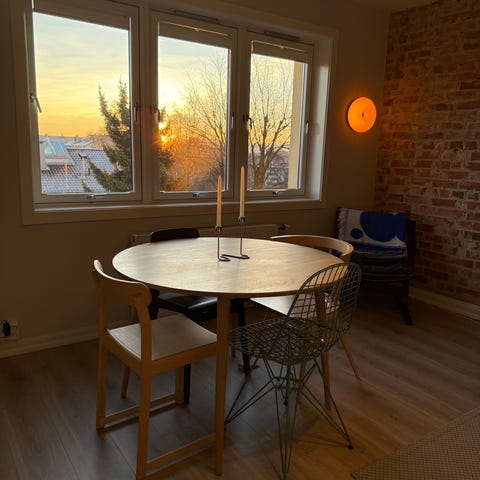 Bordet fremstår i god stad, ingen feil, skader eller mangler. Har stått i røyk og dyrefritt hjem.