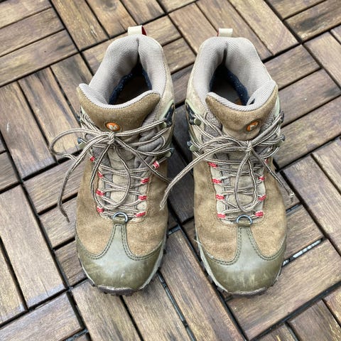 Skrevet initialer med tusj på siden av begge sko, vises knapt på avstand.