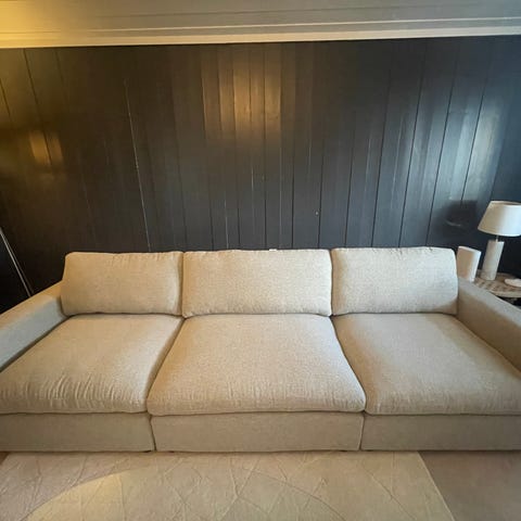Treseters sofa kjøpt for tre år siden. Katten har kost seg under sofaen (se bilde). Men ellers er sofaen fin 😊