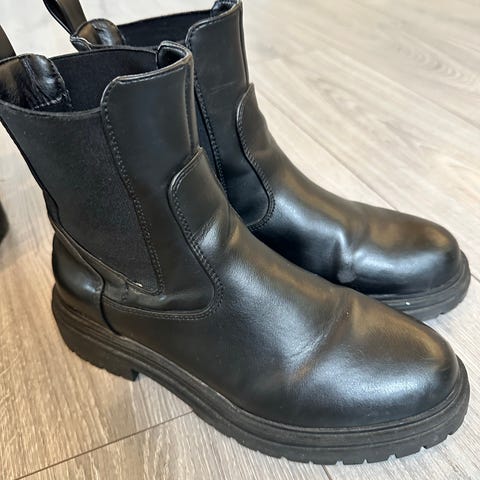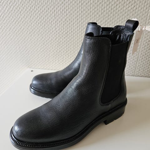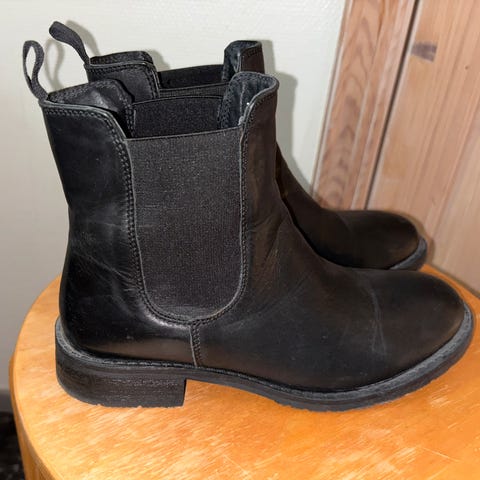 Robuste chelseeboots i skinn. Modellen har strikk i sidene og utformet med varmt fór for kalde vinterdager. Merket er Unified som er et nytt Scandinavisk merke etablert i 2022. Skoene er kjøpt i mars 2025 på Eurosko. Kunn brukt 1 gang, så de er omtrent som helt ny. Lagret rent og pent i skoskap. Såvidt ett par nesten usynlige bruksmerker framme på ene skoen, se bildet. Nypris ligger på 1299kr. Selges for 500kr pluss porto.