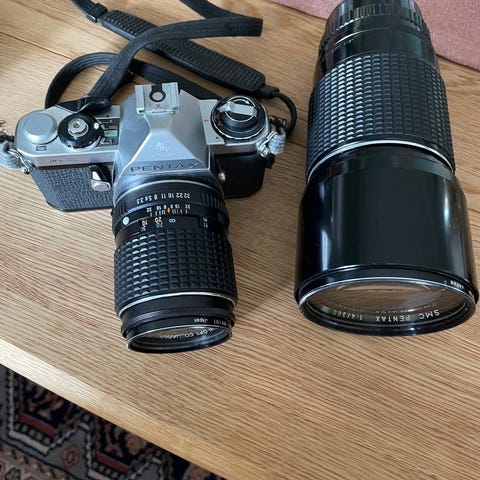 Pentax kamera. God gammeldags selges som det er. Deksler, linse og diverse er med. Send meg melding om det skulle være noe