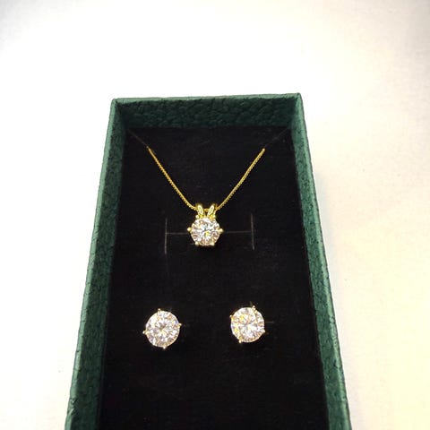 Smykkene er laget av ekte 925 sterlingsølv og er prydet med moissanitt-steiner. Moissanitt er kjent for sin fantastiske glans og ild (refleksjon), som ofte overgår selv diamanter. Dette er det perfekte settet for noen som ønsker luksuriøs kvalitet til en god pris.