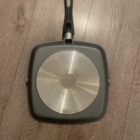 Selger en firkantet grillpanne fra Tescoma med avtagbart håndtak.