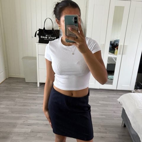 Svart skjørt for dame i størrelse M. Skjørtet har en enkel design og er laget i et mykt materiale som gir komfort og god passform