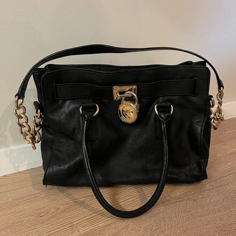 Michael Kors dameveske laget av lær. Vesken har en brun farge og er utstyrt med en skulderrem med kjededetaljer. Innvendig har vesken flere lommer for oppbevaring, inkludert en glidelåslomme. Vesken lukkes med magnetknapp.