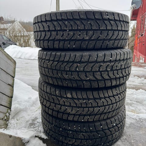 Jeg selger et sett med Continental VancoWiking 235 65 16c vinterdekk, årgang 2024 i veldig god stand, pris 4000kr alle 4.