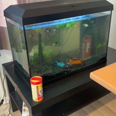 Alt selges samlet. Akvariet fungerer som det skal og passer godt både for nybegynnere og mer erfarne akvarister.