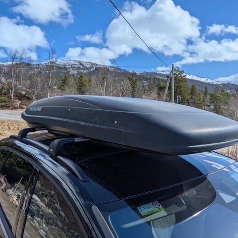 Takstativ på skiboks (lav montering) passer de fleste biler med takrails som ligger over taket (100-110cm) 1000,-