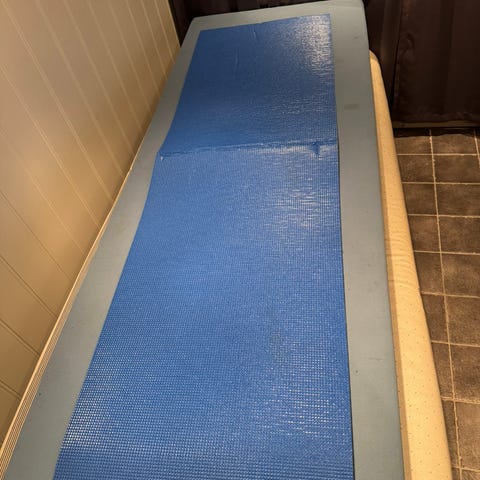 Gir bort et godt brukt, men helt fint sitteunderlag. Ca 1.8 langt