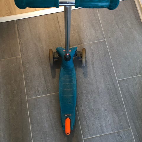 Micro Mini Kickboard sparkesykkel i blå farge. Passer for barn og har tre hjul for god stabilitet. Laget i slitesterkt materiale med justerbart styre. Egnet for bruk på jevne underlag.