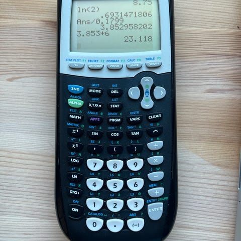 Texas Instruments TI-84 Plus kalkulator med deksel. Vitenskapelig kalkulator med flere funksjoner for matematikk og statistikk. Svart og hvit farge, bærbar størrelse.