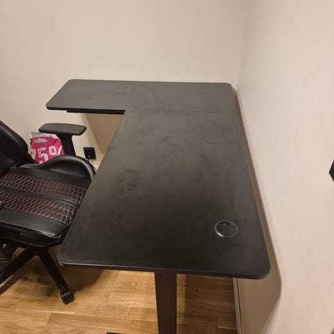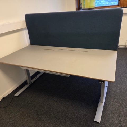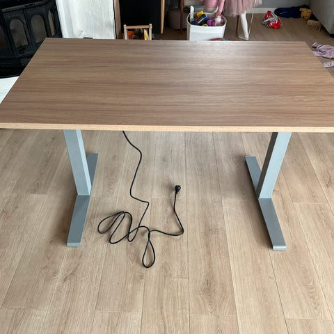 Fint brukt skrivebord med elektrisk hev/senk. Går fra 73cm til 123cm. Favoritt-høyde kan lagres (1-2-3). Selges da det dessverre blir litt for stort for mitt nye hjemmekontor. Må hentes.