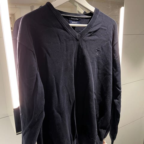 Farge: Mørk blå (navy blue) med hvite detaljer