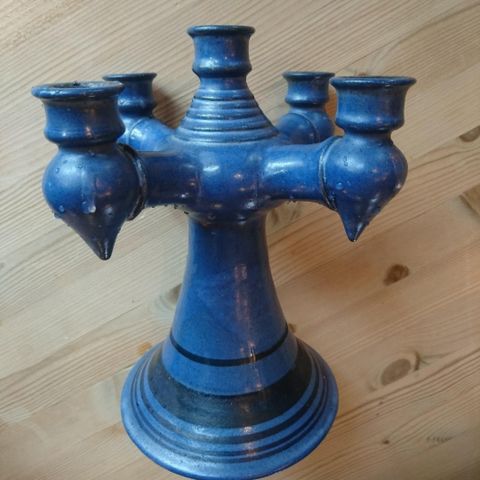 Håndlaget studiokeramikk – dekorativ skål/objekt i blå toner