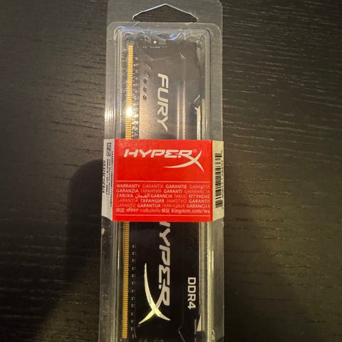 HyperX Fury DDR4 RAM 3200 Hz (1Rx8 XMO4-3200-UA2-11) med totalt 16GB kapasitet fordelt på to moduler à 8GB. Passer for datamaskiner som støtter DDR4-minne.