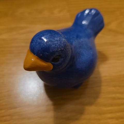 Keramisk blå katt figur med detaljerte øyne. Laget av keramikk med blå glasur. Passer som dekorasjon.