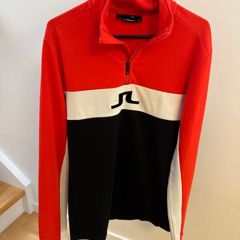 J.Lindeberg treningsjakke for herre i oransje og blå. Jakken har glidelås foran og er laget i lett materiale egnet for golf, trening og utendørsaktiviteter.