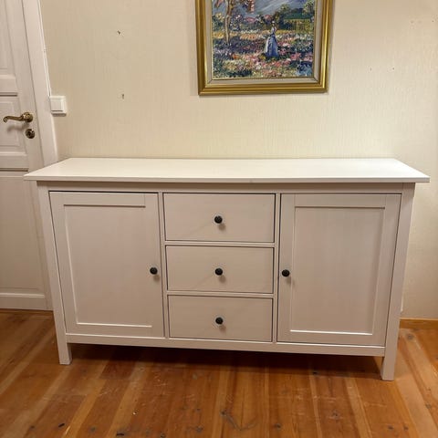 IKEA skjenk i god stand. Den er hel og stabil, og har kun noen få små riper/bruksmerker (se bilde). Ingen større skader. Har vært normalt brukt og godt tatt vare på.