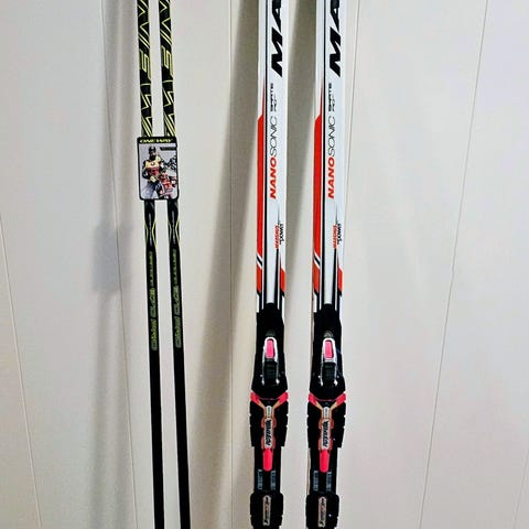 Madshus Hypersonic Carbon Skate skøyteski (konkurranse/elitekvalitet) med karbonkjerne. Utrolig lette og med fantastisk gli. Pent brukt, ingen riper eller hakk. 195 cm lange, spenn tilpasset ca 85-90 kg.
