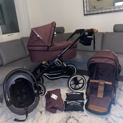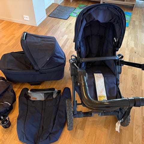 Selger en Emmaljunga NXT90 DUO-vogn (liggedel + sportsdel). Veldig solid og trygg kvalitetsvogn med terrenghjul, som gjør den spesielt godt egnet for turer, vinterføre og ujevnt underlag.
