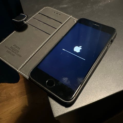 Apple iPhone 10 mobiltelefon med 64 GB lagringskapasitet. Enheten har svart farge og glassbakside. Telefonen er godt brukt, og knust på baksiden.