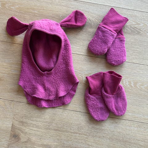 Huttelihut balaclava 0-1 år 47-49 cm + votter 6mnd ullfleece