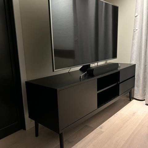 EKEBERG Tv-benk 152x42 H 55 cm i svartlakkert askefiner.