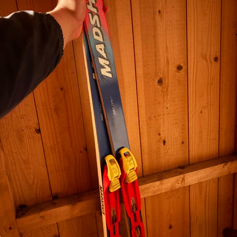 Den ene enden av skien har splittet.
