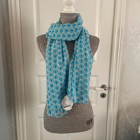 Gudrun Sjödén skjerf i grønn bunnfarge med mønster, 100 % bomull. Skjerfet er avlangt.