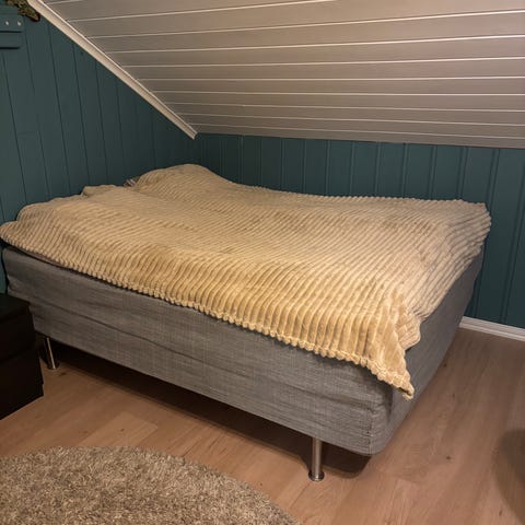 Brukt rammemadrass fra IKEA. 90x200. Myk overmadrass medfølger. Har noen bruksmerker, se bilder. Må hentes på Stange.