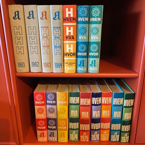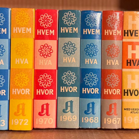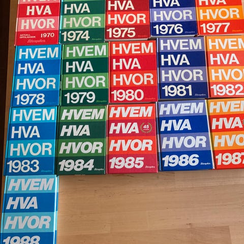Aktuell bok med tittel "Hvem Hva Hvor". Inneholder informasjon og fakta fra året 1972.
