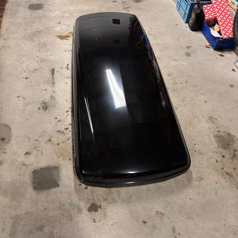 Lite brukt takboks. Ingen striper eller merker. Kan selges med Thule Wingbar for rails. Har stått på en Mercedes GLE