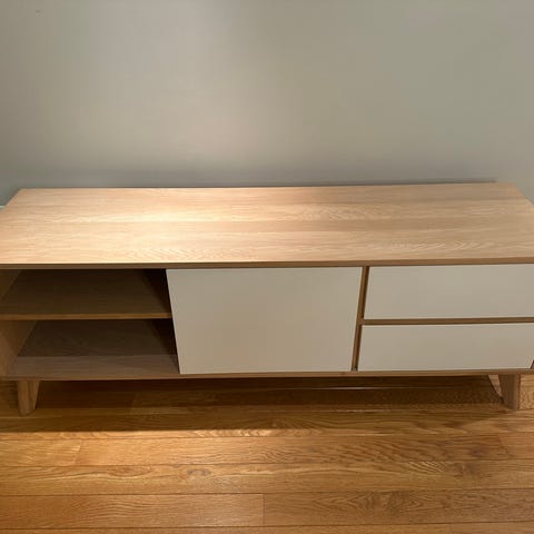 Eikefiner med 1 skuff og hylle, ubetydelig brukt. Ny pris 5499,-.