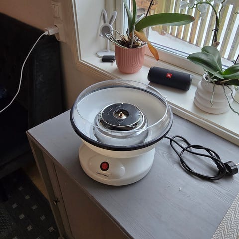 KitchPro Cotton Candy Maker kun brukt 1 gang og fremstår som ubrukt. Maskinen leveres med måleskje og original emballasje.