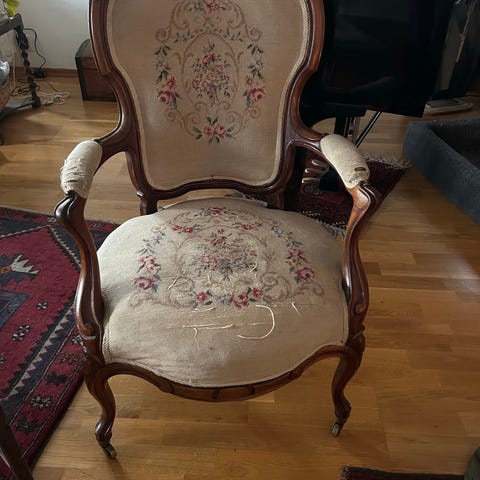 Broderte stoler fra 1930 tallet. Må hentes på Adamstuen