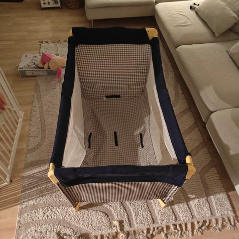 Velfungerende reiseseng, Brio, tilhørende madrass. Lite og pent brukt. Hentes på Lindeberg i Oslo