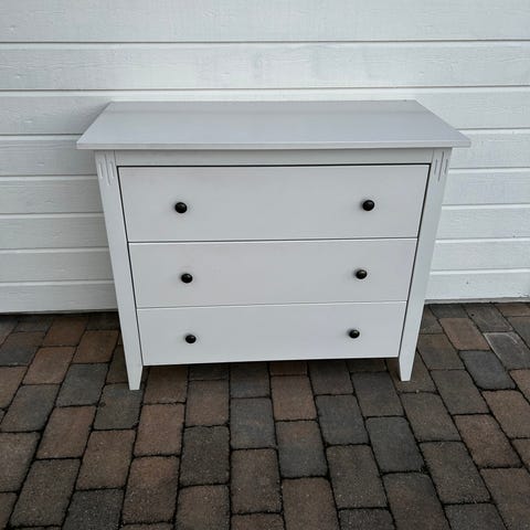 En fin kommode, kjøpt brukt fra finn tidligere. Veldig pent brukt, ingen skader. Ble malt i en grå/beige farge.