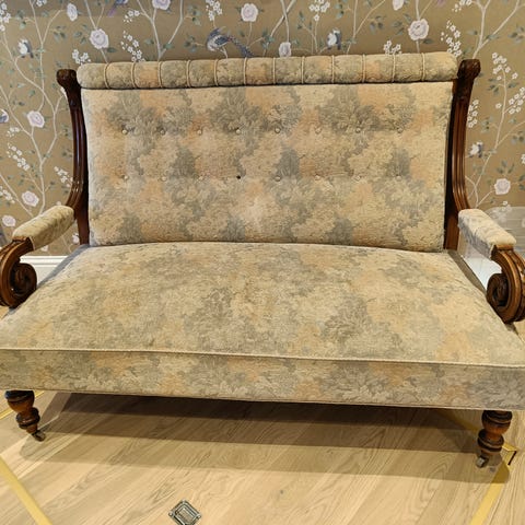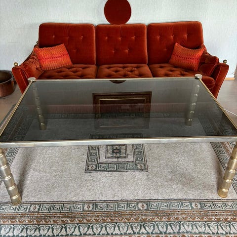 Flott, pent holdt salong med fine utskjæringer både på stoler, sofa og bordet. Hel og pen rotting på sidene. Salongbordet er meget pent og i heltre. Salongen er ikke slitt og er god å sitte i.