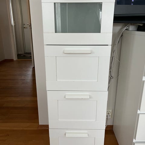 Selger pent brukt Brimnes Kommode med 3 skuffer i hvit/frostet glass