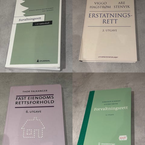 Bøker brukt til juss på BI (første år, andre semester).