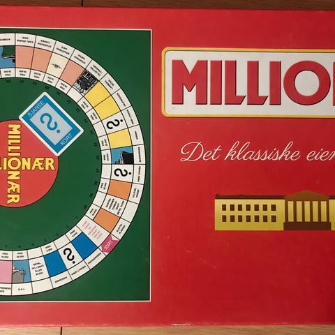 Miljonær Junior brettspill med spillekort og spillbrikker. Inneholder ulike kort med pengesummer og spilldeler for flere spillere. Egnet for barn og familier som ønsker et økonomi- og strategi-basert brettspill.