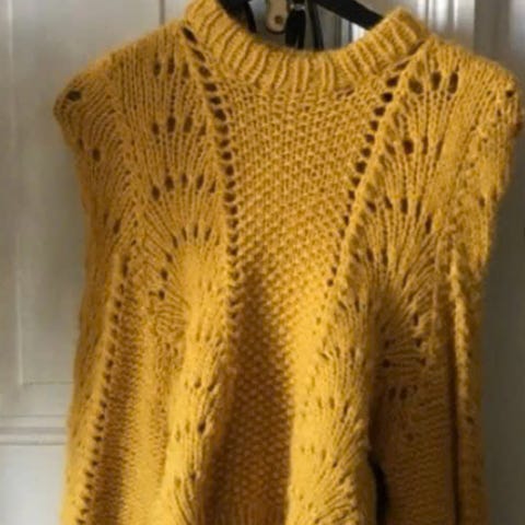 Selger bølgegenser strikket på bestilling.