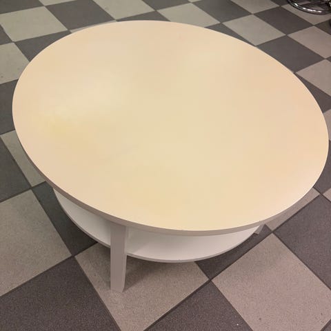 Bordet er stabilt og i pen stand, med noen få normale bruksspor.