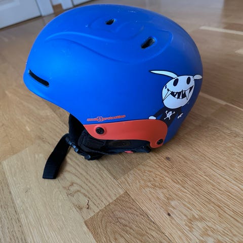 Sweet Protection Trooper Jr. hjelm i blå og oransje farge, størrelse S/M. Hjelmen har In-Mold konstruksjon for beskyttelse og ventilasjon. Passer for barn.