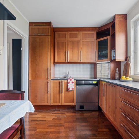 Kjøkken fra Norema i heltre eik fra tidlig 90-tal selges med følgende hvitevarer inkludert:
