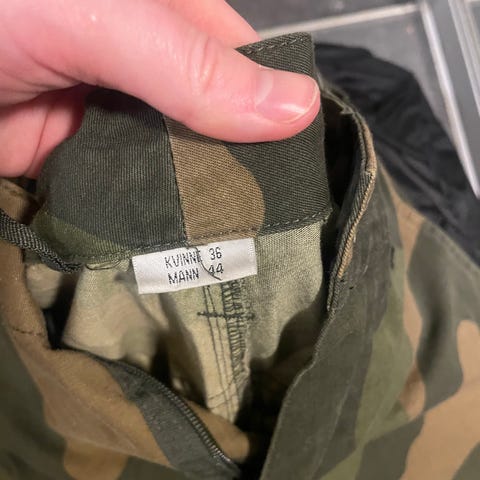 Forsvaret Bukse selges billig da den har noen merker fra lett bruk