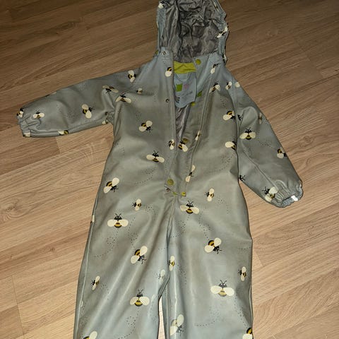 «Heilårsregndressen med vattering i både torso, ermer og bein. Denne regndressen tålar både øspøs regnvêr og mykje leik.