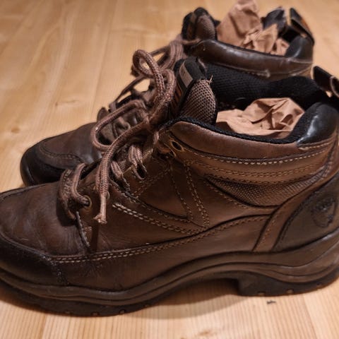 Selger mine godt brukt ariat ridesko i str. 38,5. Disse har vært helt supre i mange år⭐️ De er ikke like pene lengre, men fortsatt gode og har mer bruk igjen.