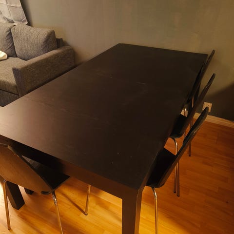 Bord som fungerer både med høye stoler og vanlige stoler da man kan justere høyden på benet. Festes i veggen.