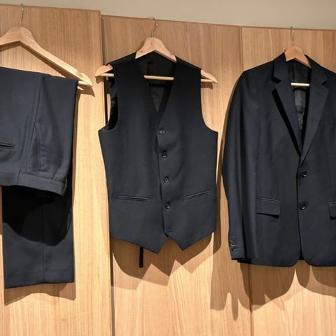 Veldig flott marineblå dress som er brukt til konfirmasjon og jul av vår ungdom på ca 175 cm.